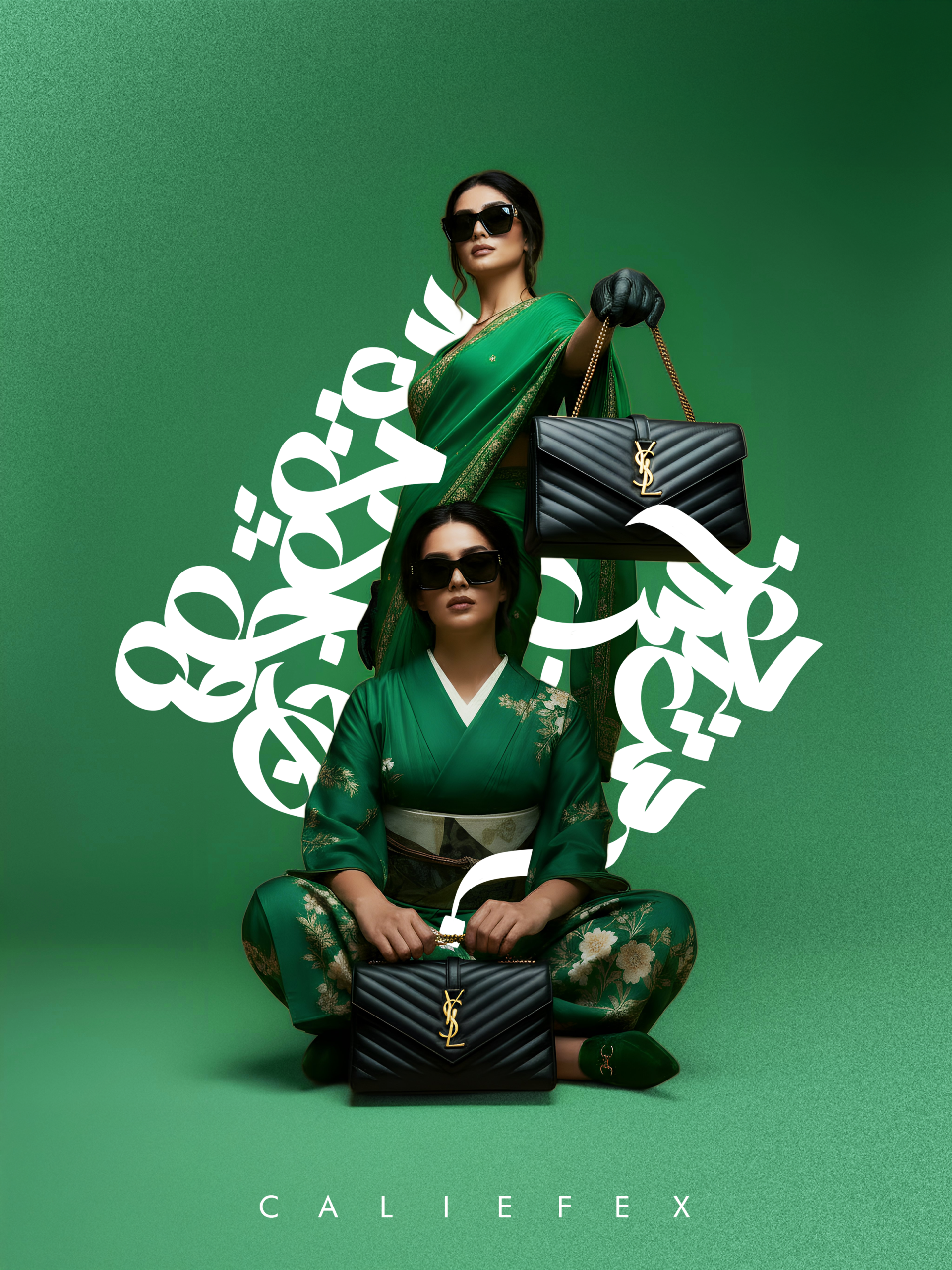Through the use of graphic design, AI and arabic calligraphy art which is hand written, I have created a concoction of designs that exemplify the power of traditional arts and modern technology. This gallery also displays shots of product photography used for marketing and branding.